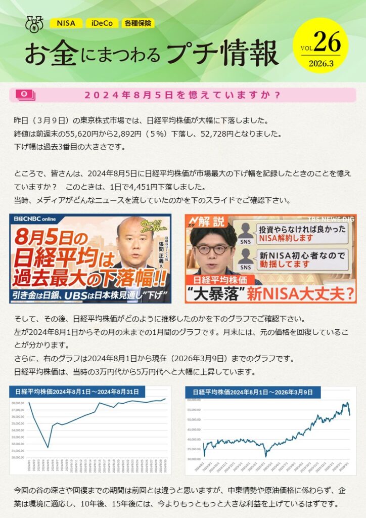 ところで、皆さんは、2024年8月5日に日経平均株価が史上最大の下げ幅を記録したときのことを憶えていますか? このときは、1日で4,451円下落しました。 当時、メディアがどんなニュースを流していたのかを下のスライドでご確認下さい。